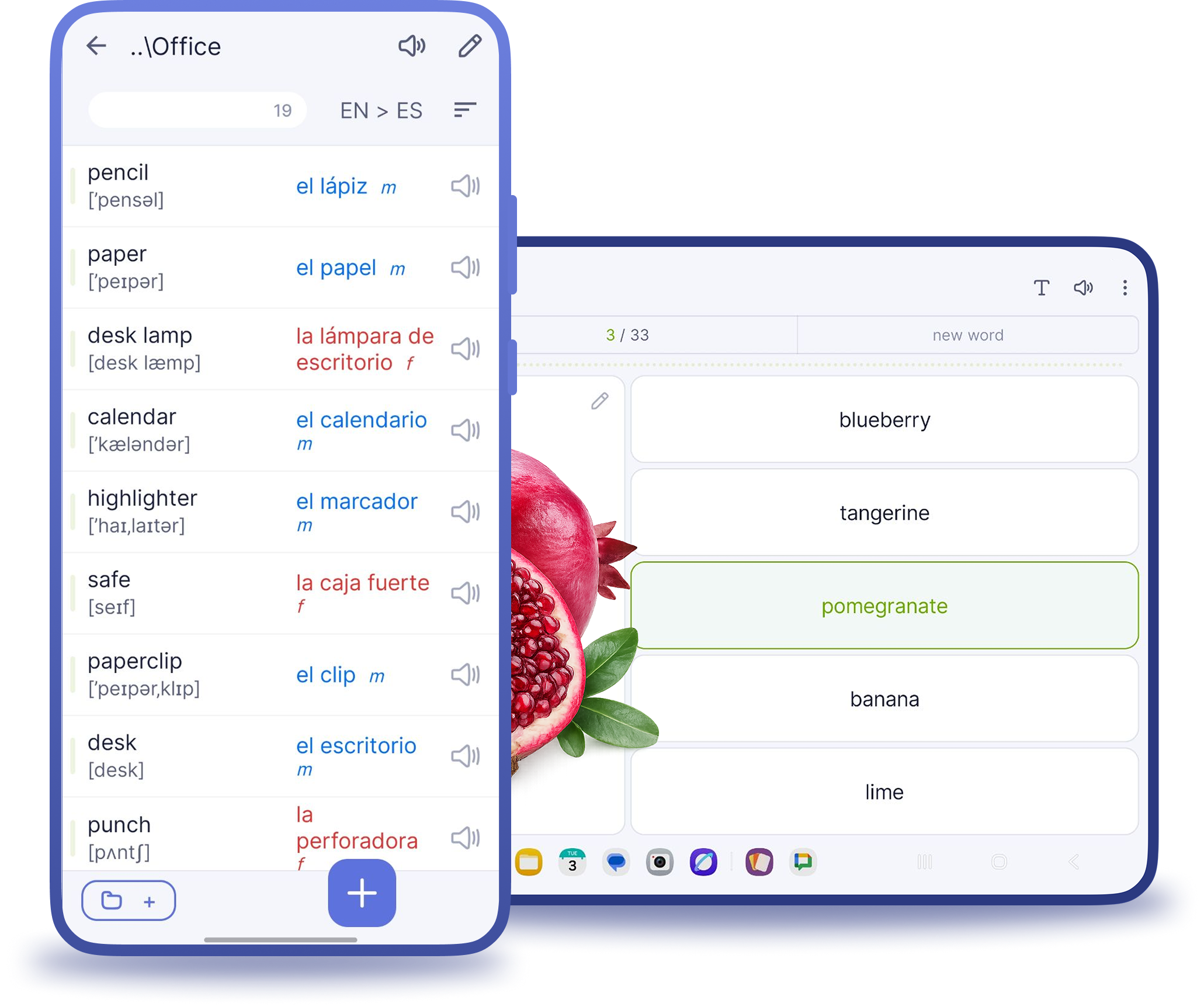 You get to know the words just like on ordinary paper cards. Familiarize yourself with the words and practice pronunciation (it is important to pronounce the words)